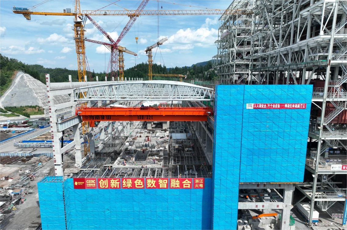 贵州金元织金“上大压小”异地改建项目1#主厂房钢屋架顺利吊装