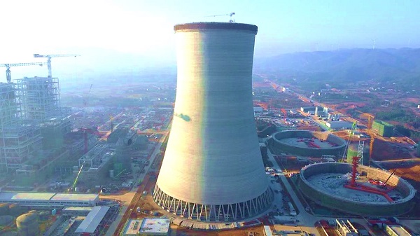 烟塔施工分公司国能湖南岳阳电厂1号冷却塔工程顺利结顶